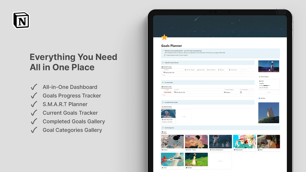 Visualize your completed goals with some Studio Ghibli fun - "make time to celebrate your accomplishments, no matter how big or small" - Goal Categories Gallery